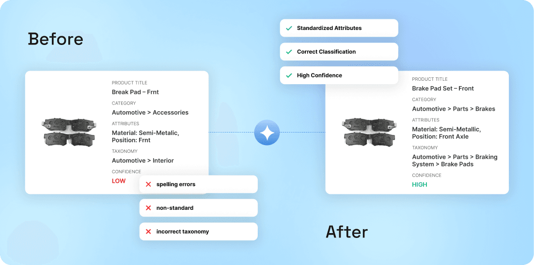 AI agents that continuously evaluate, correct, and enhance product catalogs using structured reasoning — not one-time enrichment.