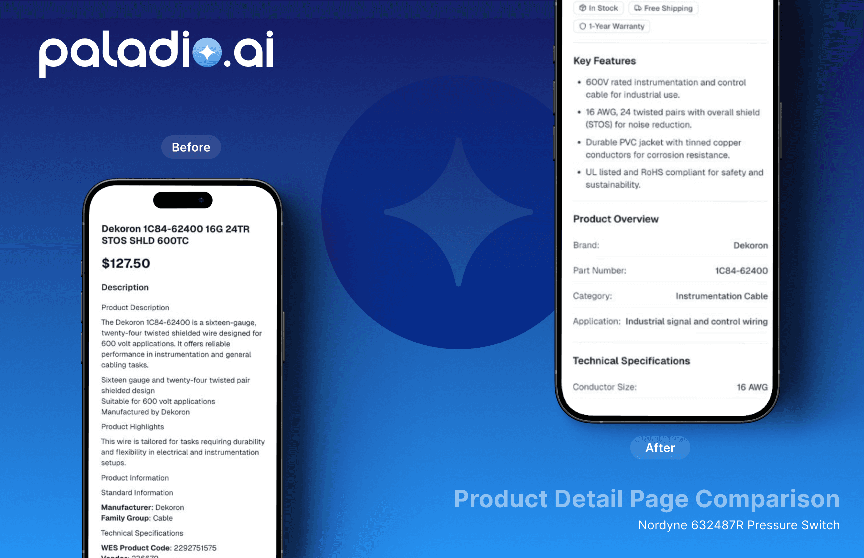 Palladio Ecommerce Agents turn messy product feeds into clean, verified data ready for marketplaces, PIMs, and internal systems.