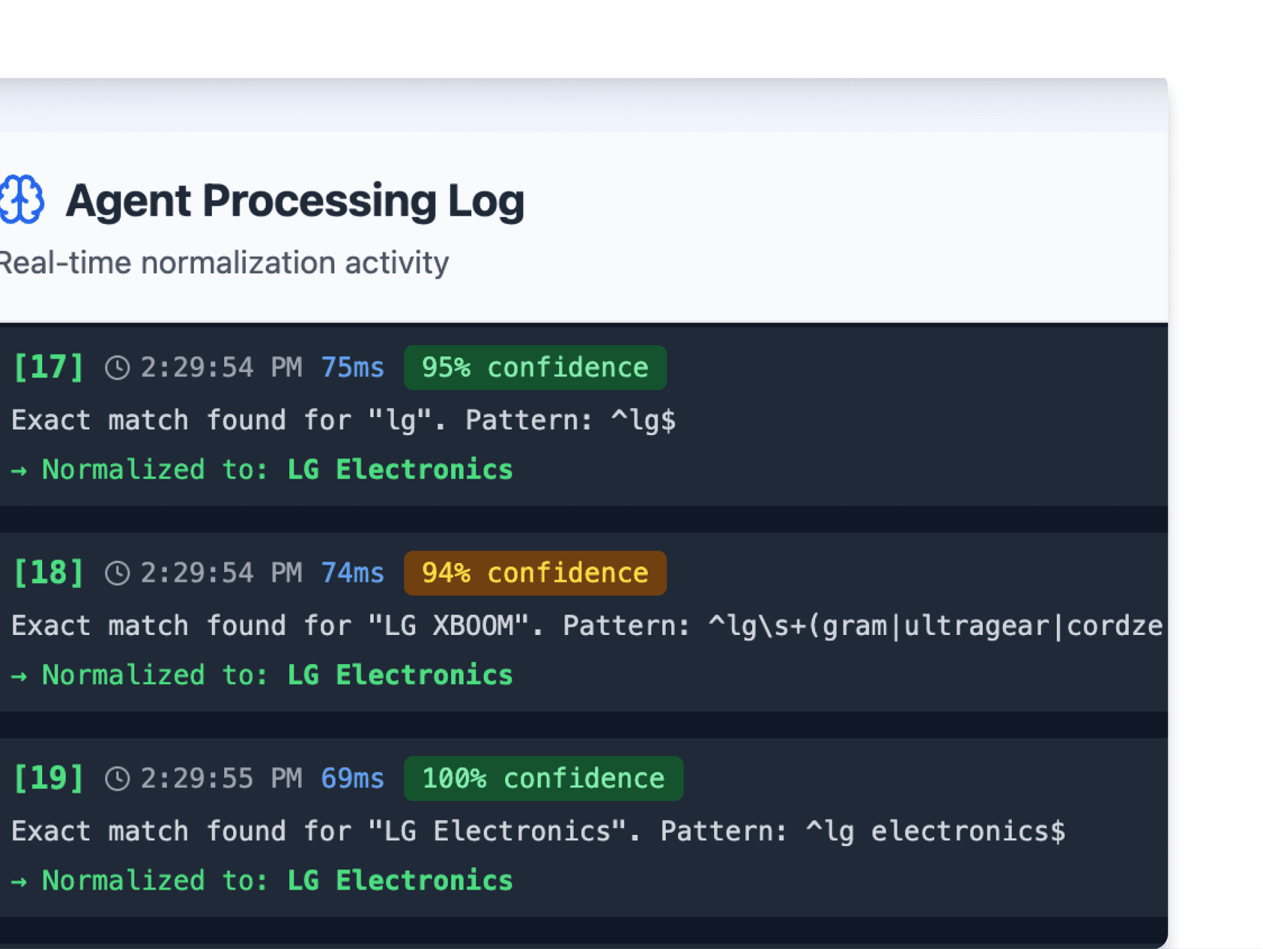The agent plugs directly into your PIM, ERP, marketplace system, vendor onboarding flow, or internal product DB—zero workflow disruption.